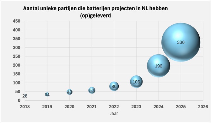 Voltho houdt bij welke partijen betrokken zijn bij het opleveren van batterijprojecten. Hierdoor zien we dat het ecosysteem van bedrijven dat actief is in batterijprojecten in hetzelfde tempo meegroeit.